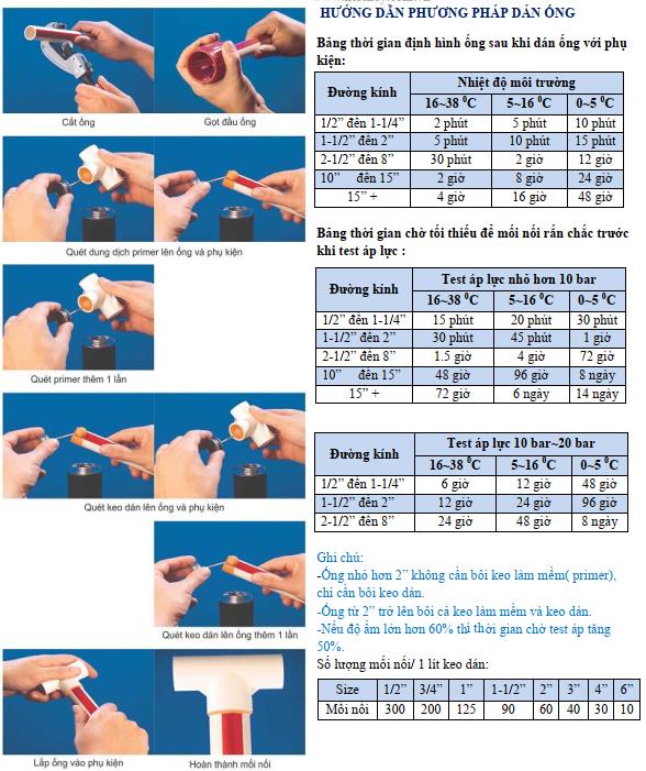 8. Hướng dẫn phương pháp dán ống và thời gian khô của keo dán